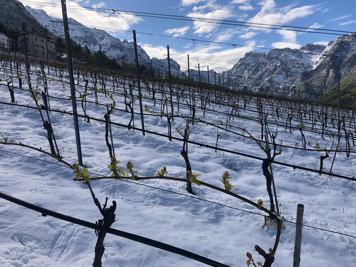 (ANSA) – ROMA, 6 MAG – Una ventina di centimetri di neve hanno imbiancato fuori stagione anche i filari di Maso Michei, la tenuta situata in Trentino, a 823 metri sul livello del mare e al confine con il Veneto e il Parco Naturale dei Lessini, di proprietà di Martin Foradori Hofstätter, titolare della omonima cantina di Tramin – Termeno (Bolzano).