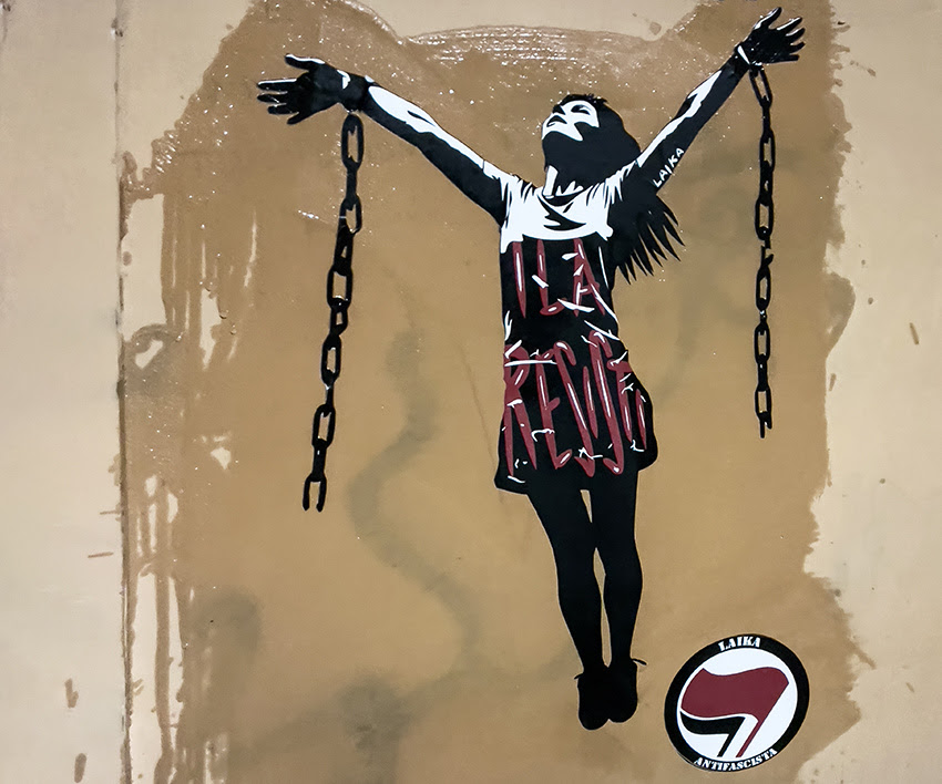 Nella notte tra il 30 e il 31 gennaio, a pochi passi dall’Ambasciata di Ungheria a Roma, è apparsa la nuova opera della street artist Laika dedicata a Ilaria Salis. Il poster, affisso all’incrocio tra via dei Villini e via Malpighi, ritrae l’attivista antifascista, professoressa di Monza, che spezza le catene, Sul suo vestito la scritta: “Ila resisti”.