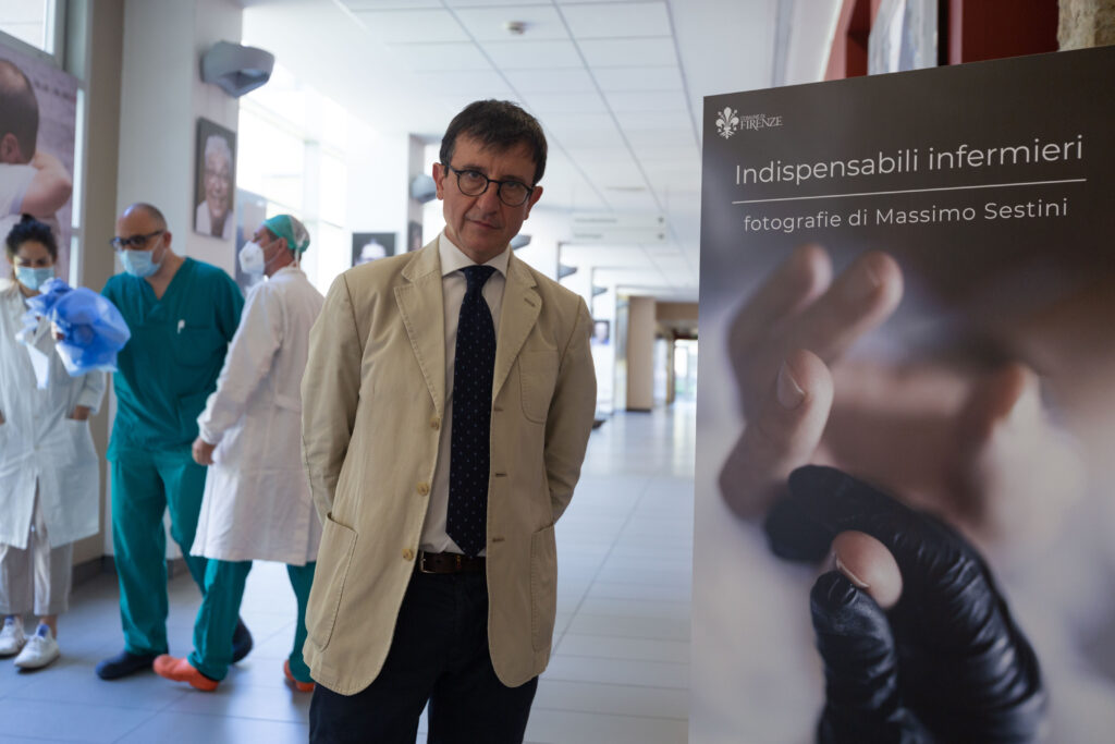 Firenze 23 giugno 2020 – La tragedia della pandemia attraverso gli occhi degli infermieri del più antico ospedale del mondo: Santa Maria Nuova a Firenze. Le ha fissate l’obiettivo di Massimo Sestini, il celebre fotoreporter vincitore del World Press Photo nel 2015, e sono esposte nella mostra “Indispensabili infermieri”, allestita da oggi fino a fine dicembre nel corridoio che si affaccia sul Chiostro della Magnolia, e visitabile, nel rispetto delle norme vigenti, unicamente dai sanitari, dai pazienti e dagli utenti dell’ospedale fondato da Folco Portinari, il banchiere padre di Beatrice, la ‘musa’ di Dante Alighieri.