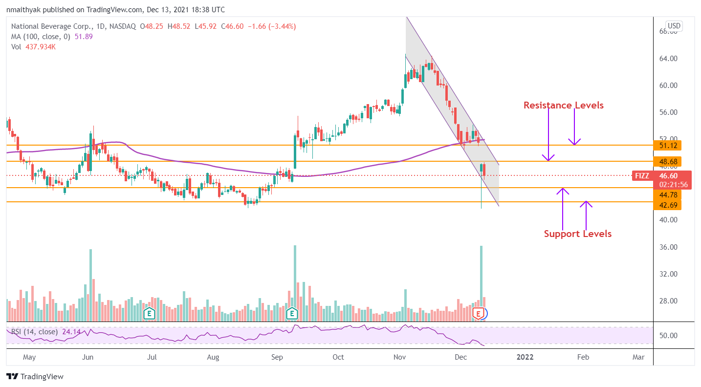 Tecnicamente, le azioni di National Beverage sembrano essere scambiate all’interno di una formazione di canale fortemente discendente nel grafico intraday. Di conseguenza, il titolo è precipitato in condizioni di ipervenduto, creando una perfetta opportunità di acquisto.