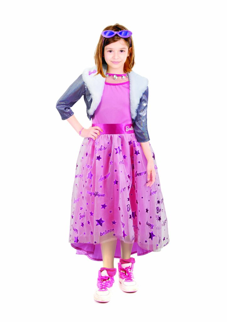 Barbie Princess Adventure è la serie animata andata in onda su Cartoonito, dove la magia legata al mondo fantastico delle principesse e gli stili di vita delle nuove generazioni si fondono per far vivere a Barbie avventure principesche con un pizzico di modernità. CIAO prende così spunto dalla bambola Mattel dedicata alla serie, per realizzare un meraviglioso abito da principessa 2.0: il costume presenta una gonna in tulle con stampa effetto metallizzato; un giacchino translucido con collo in ecopelliccia e logo Barbie applicato, il tutto impreziosito da gemme sulla scollatura e occhiali glamour!