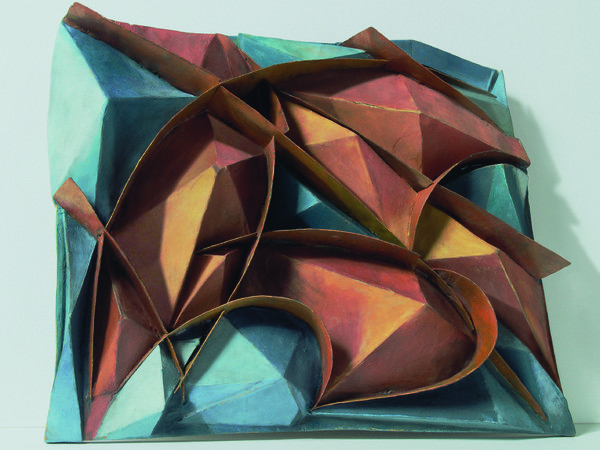 © Futur-ism Roma, Italia / Giacomo Balla, by SIAE 2019 | Complesso plastico colorato di frastuono + Velocità, c. 1914. Legno, cartone e lamine di stagno colorate ad olio su legno, 52x60x7 cm. Collezione privata