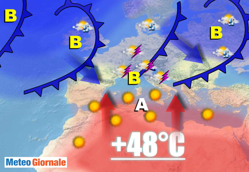 Ed ecco la prova di quanto descritto prima: forti avvezioni calde si alterneranno ad incursioni di aria oceanica verso il Mediterraneo centrale, e tale area diventerà territorio di scontro per la genesi di forti burrasche, tuttavia passeggere.
