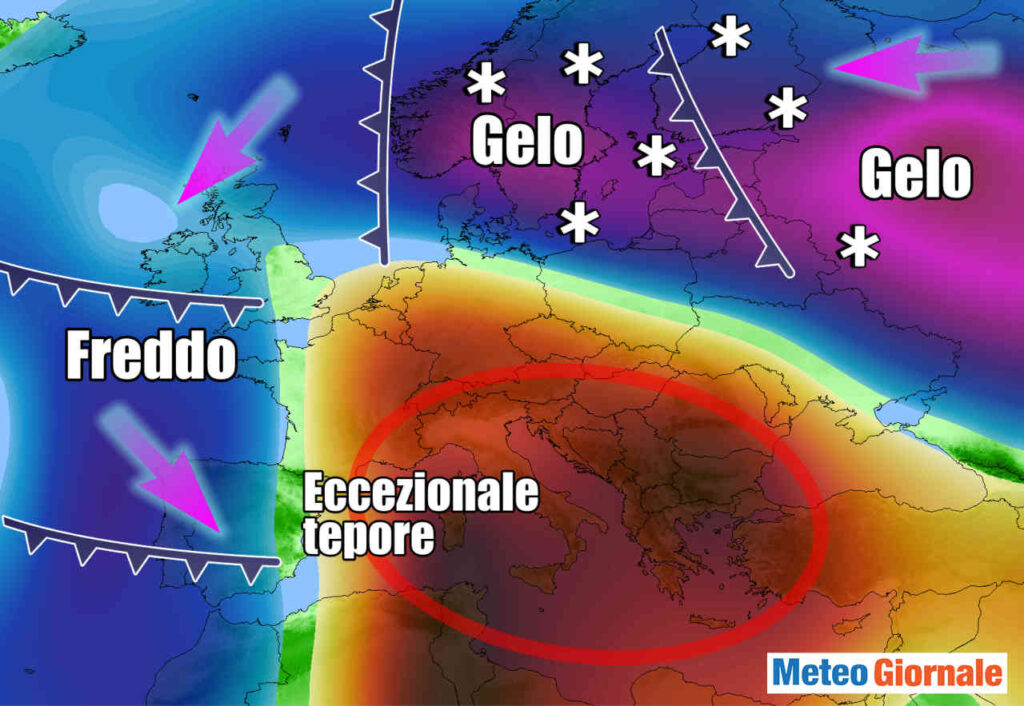 Perché in alcune regioni d’Italia le temperature massime – pensate un po’ – potrebbero superare 20°C. Normale? Macché, neanche lontanamente. Di normale, tra giovedì e sabato, ci sarà ben poco. Ma un motivo comunque c’è, che rende il tutto meno incomprensibile: il terremoto circolatorio che sta investendo l’Europa. Non sappiamo se su di noi avrà effetti invernali clamorosi, fatto sta che il gelo siberiano si affaccerà un ampie zone del vecchio continente. Altro che Primavera…