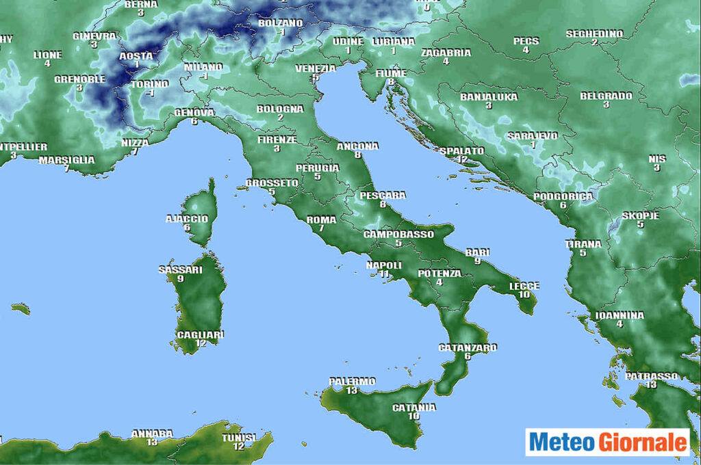 Bergamo, Verona, Cuneo, Brescia, Rovigo, Parma, Belluno, Forlì, L’Aquila, Pordenone 0°C