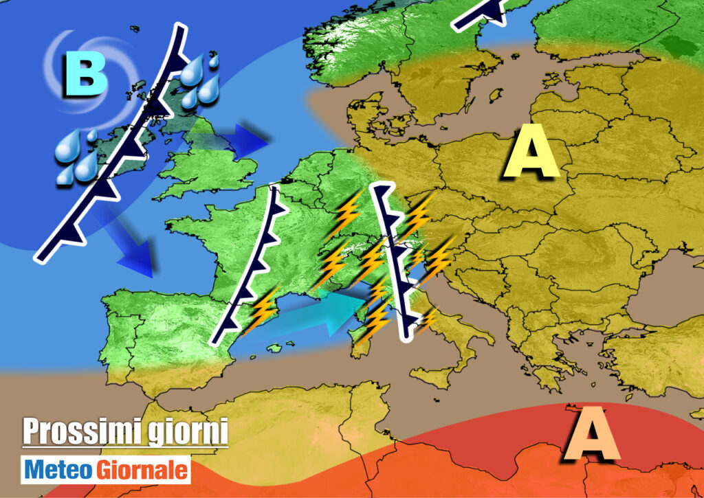 Lo scenario è già mutato per l’espansione di una pur blanda area depressionaria che si è estesa dalla Penisola Iberica alla Francia lambendo anche l’Italia. Il tempo è infatti peggiorato nel corso del weekend al Centro-Nord, con precipitazioni spesso temporalesche. Il tempo rimane discreto al Sud, dove regge l’anticiclone coadiuvato peraltro dall’afflusso di correnti calde