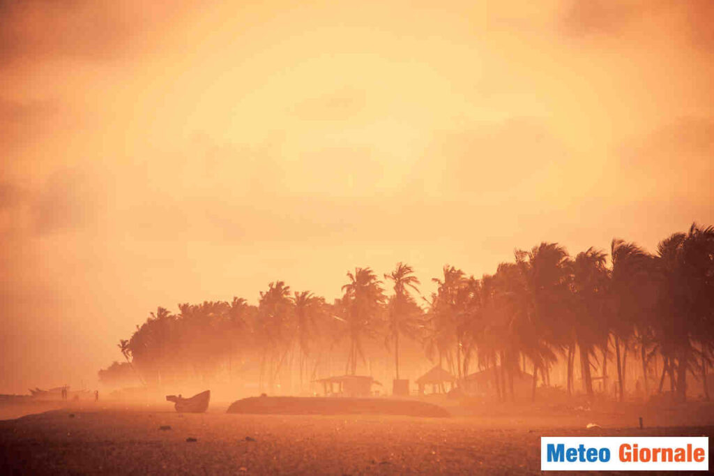 Oltre al caldo anomalo, che raggiungerà l’apice nel weekend, questo intenso richiamo di correnti meridionali determinerà tempeste nell’entroterra africano. In tal modo si muoverà un ingente carico di polveri sahariane dal deserto, trasportate in atmosfera dai forti venti.