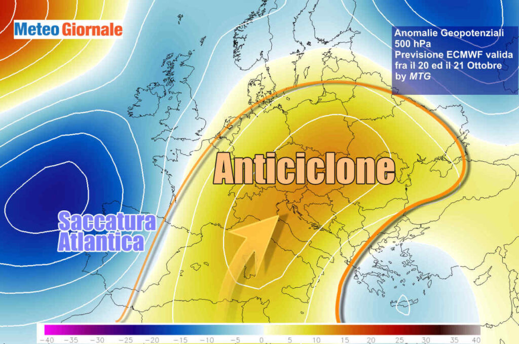 In tal modo verrà alimentato l’anticiclone da una sempre più marcata componente subtropicale, con la stessa saccatura che faticherà ad avanzare verso levante, sbarrata proprio dal muro di alta pressione presente sull’Italia e su parte dell’Europa Centro-Orientale.