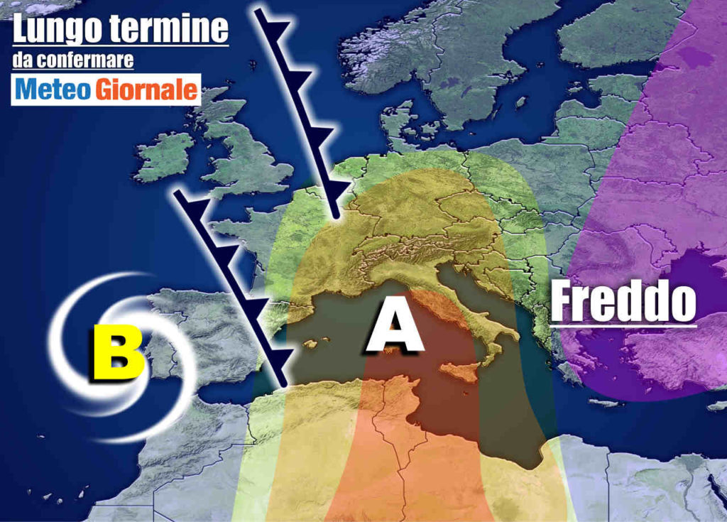 L’altra ipotesi, al contrario, vedrebbe una tenuta del promontorio africano e quindi una prosecuzione della fase meteo climatica tardo primaverile.