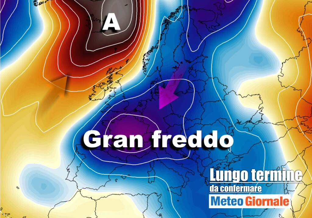 Ancor più interessante evidenziare la migrazione dei centri depressionari principali verso il Nord Europa, il ché lascerà libera una porzione di Nord Atlantico laddove andrà a inserirsi – a partire dal fine settimana – l’Anticiclone delle Azzorre. Significa che avremo una spinta meridiana importante, destinata a innescare un movimenti di masse d’aria fredda verso sud.