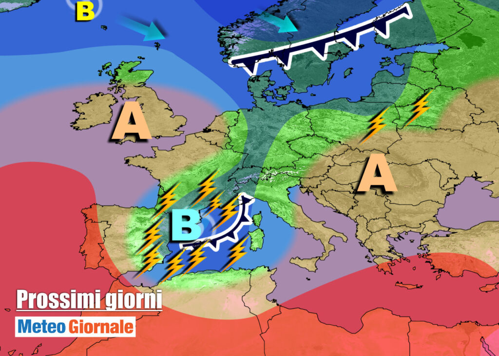 Il minimo ciclonico tenderebbe a scavarsi ad ovest, con fulcro a ridosso delle Baleari fin da martedì, troppo distante per condizionare in modo significativo il meteo sull’Italia. La perturbazione tenderà anzi ad arretrare con moto retrogrado ad occidente. L’instabilità la ritroveremo più circoscritta in Sardegna e coinvolgerà localmente anche l’estremo Nord-Ovest e la Sicilia.