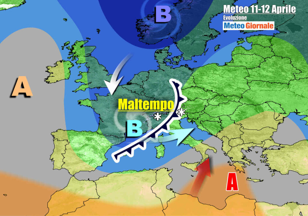 Il fronte sarà alimentato anche dai contrasti legati ad aria più fredda in discesa dalle alte latitudini, che inizialmente affluirà ad ovest dell’Italia per poi penetrare ad inizio settimana con associato un nucleo ciclonico in quota. Avremo pertanto piogge e temporali, con un calo termico più avvertito sulle regioni settentrionali.