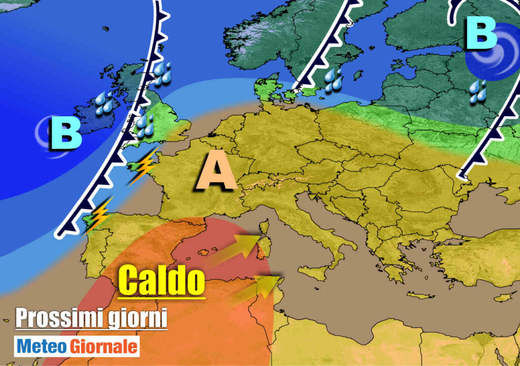 Un corridoio depressionario si estenderà dal Vicino Atlantico verso il Nord Europa, mentre il promontorio anticiclonico si estenderà su gran parte del Mediterraneo, Balcani e Italia. Le temperature saliranno ulteriormente portandosi sopra media, in quanto l’anticiclone si avvarrà di un crescente apporto di masse d’aria più calde d’origine subtropicale.