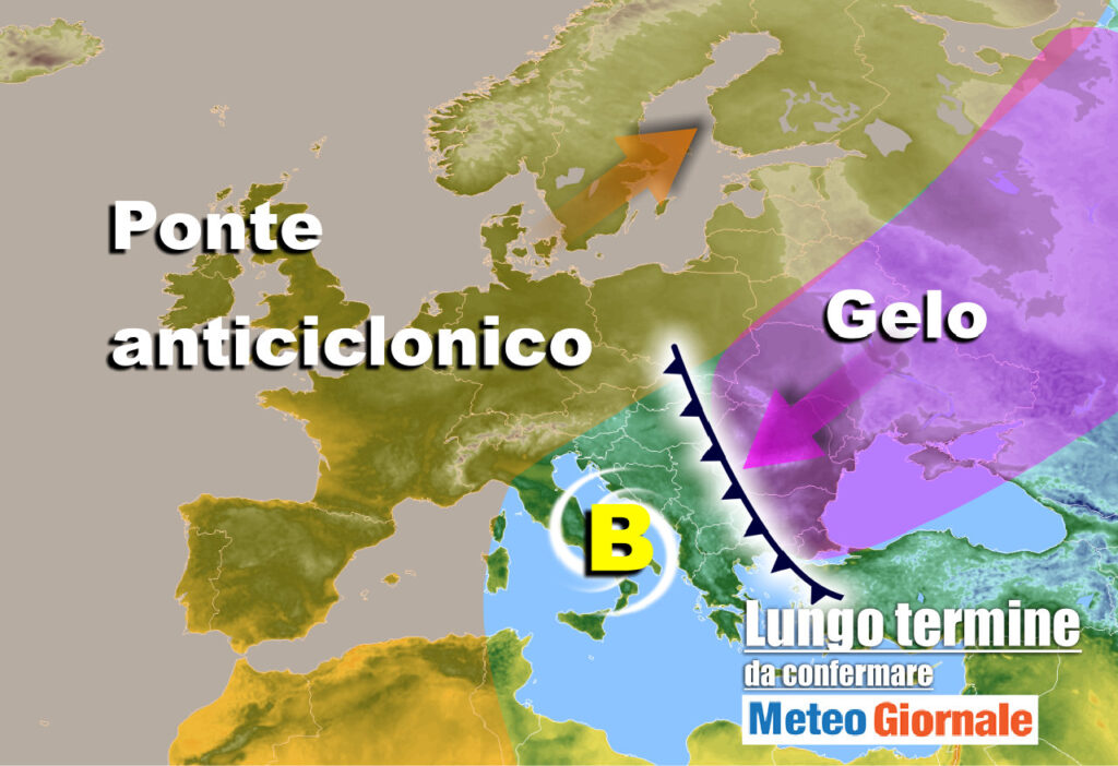 Il promontorio anticiclonico potrebbe venire a farci visita, interrompendo in tal modo il lungo dominio del maltempo. Ma come detto potrebbe trattarsi di una ridistribuzione barica che potrebbe condurci a nuovi affondi freddi nell’ultima decade mensile. Ciò perché l’Alta Pressione potrebbe estendersi verso nordest, andando a congiungersi con un’altra struttura anticiclonica presente sull’Europa orientale. In tal modo aria assai fredda continentale potrebbe spingersi verso ovest e coinvolgere parzialmente anche l’Italia. Probabilmente le regioni adriatiche e del Sud, ma trattandosi di ipotesi evolutiva andrà confermata anche dai modelli matematici.