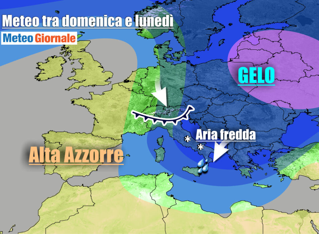 Il nucleo più freddo risulta ostacolato nella sua marcia verso ovest da una ripresa del flusso atlantico alle alte latitudini. Il grosso del gelo si manterrà così ad est della nostra Penisola. Già domenica avremo interferenze d’aria meno fredde in quota, che spingeranno una perturbazione capace di causare precipitazioni su Alpi e poi lungo le regioni tirreniche con neve fino a bassissime quote.