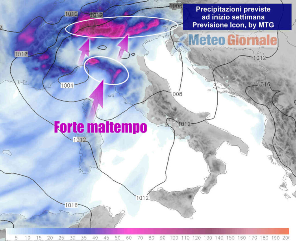 Ci sarà il rischio di piogge e temporali anche forti prima sulla Liguria, sull’Alto Piemonte e sull’Alta Toscana, poi sulla fascia pedemontana del Triveneto ed in Toscana. Martedì il fronte sfilerà rapidamente verso il Sud, con possibili fenomeni localmente intensi lungo i settori tirrenici.