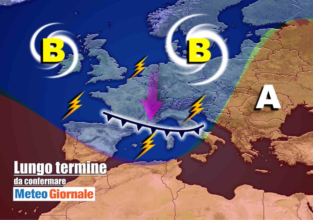 Cambiamento per mano di una goccia fredda atlantica, che dovrebbe insinuarsi all’interno dell’Alta Pressione provocando la classica instabilità atmosferica.