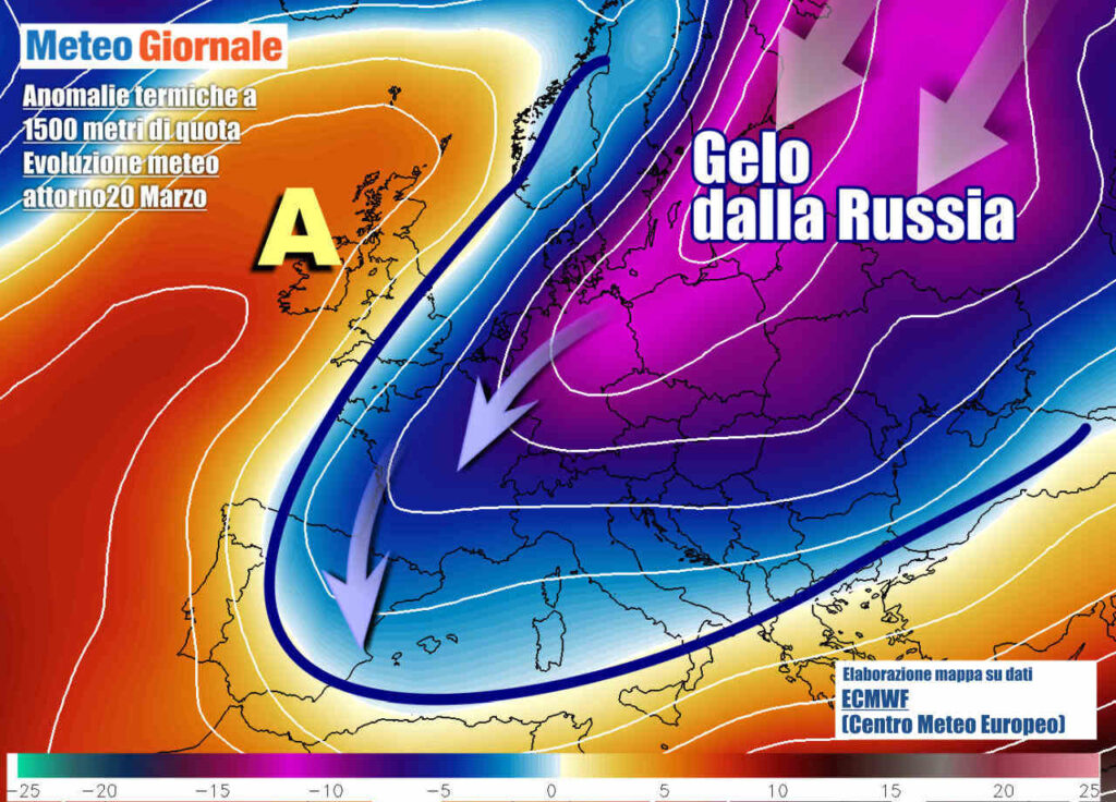 Avremo quindi una decisa recrudescenza del meteo invernale, con condizioni di gelo e neve su molte nazioni d’Europa. Questo ulteriore apporto d’aria così fredda andrà ad incentivare la genesi di una depressione mediterranea, che porterà maltempo sull’Italia.
