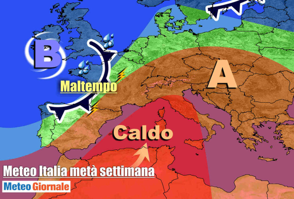 Un promontorio di alta pressione tende a consolidarsi sul Mediterraneo Centrale, ma si protende anche a buona parte dell’Europa Centro-Orientale. Le nazioni occidentali del Continente sono invece alle prese con un’estesa saccatura il cui perno si trova sul Regno Unito.