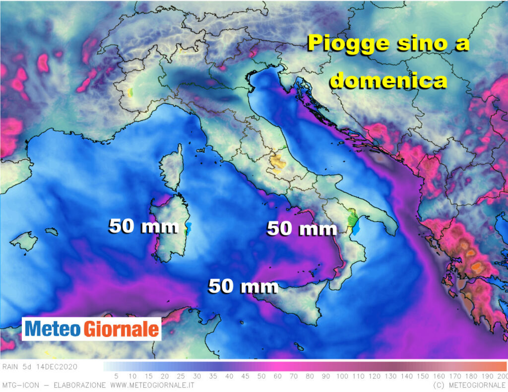 Si evince un progressivo miglioramento nelle regioni settentrionali e questa è certamente la notizia migliore. Ma si evincono fenomeni meno incisivi anche sulle tirreniche, benché sui settori costieri del Meridione, della Sicilia occidentale e della Sardegna di ponente siano attesi picchi di oltre 50 mm.
