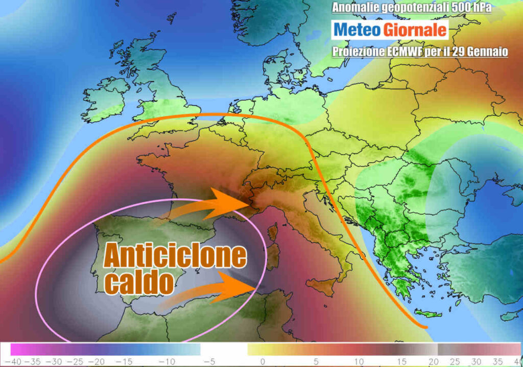 Fine gennaio potrebbe vedere una temporanea fiammata di caldo anomalo su parte dell’Italia, con temperature ben oltre la norma. Prima ci sarà però da fare i conti con un’irruzione fredda che caratterizzerà i primi giorni della settimana.