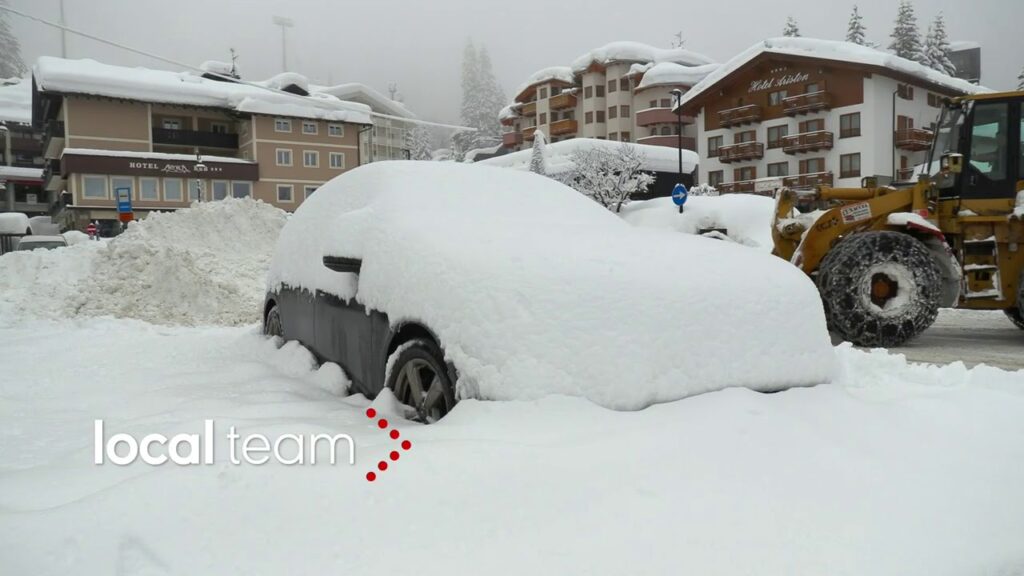 Nella località turistica di Madonna di Campiglio, semivuota a causa delle restrizioni i divieti dovuti alla pandemia, la manutenzione delle strade prosegue senza sosta, e di neve ce ne tantissima, e ormai non si sa neppure metterla, in una località che è ben abituata a vivere grandi nevicate.