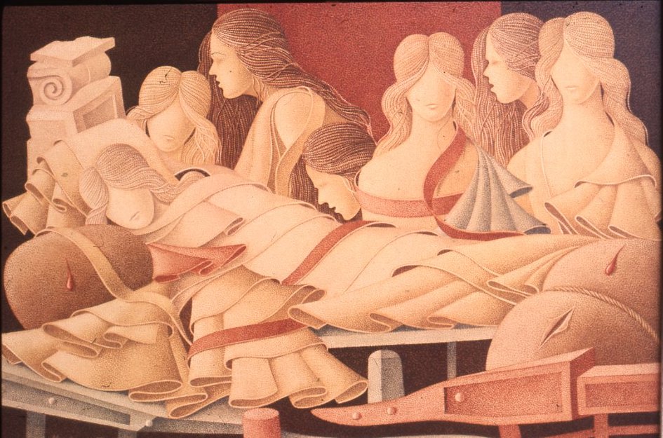 Aveva rilevato, ancora, Enrico Crispolti, un dei più importanti critici d’arte non solo italiani: “[…] È la costruzione plastica delle immagini umane che Mantovanelli allora definisce con grande freschezza inventiva, e con una passione al tessuto pittorico, ineguagliata. Il riscontro è verso i miti del consumismo, dei quali propone un controcanto lirico, una trasposizione fantastica sottilmente allarmante, che l’oggettività della presentazione esalta nell’efficacia d’imminenza” […].