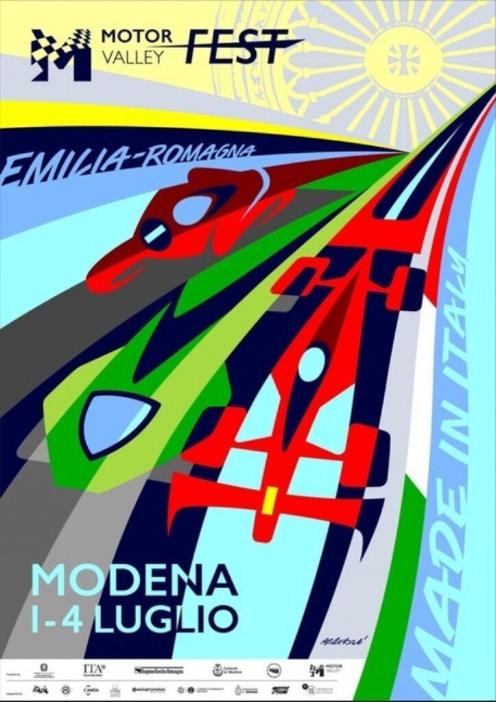 “Abbiamo declinato il manifesto nel segno della continuità – ha spiegato Aldo Drudi – con l’immagine ufficiale ideata per il gran premio di Formula Uno del Made in Italy e dell’Emilia-Romagna, e sono stati integrati nella trama del poster tre nuovi elementi: un’auto con le ruote coperte, una moto e il rosone del duomo di Modena”. Il format dell’evento prevede un ricco calendario di appuntamenti dinamici, mostre, esposizioni, ed incontri di approfondimento.