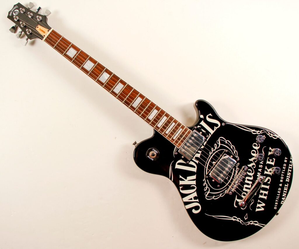 C’è poi una bottiglia di Jack Daniel’s N°27 Gold, contraddistinta da un’elegante etichetta colore ambrato e racchiusa in un cofanetto speciale, autografato per l’occasione da J-Ax. Altro pezzo da collezione, per gli amanti della musica, è un’autentica chitarra elettrica Peavey con l’iconico logo e total black, come la storica etichetta nera dell’originale Old N°7 Tennessee Whiskey.