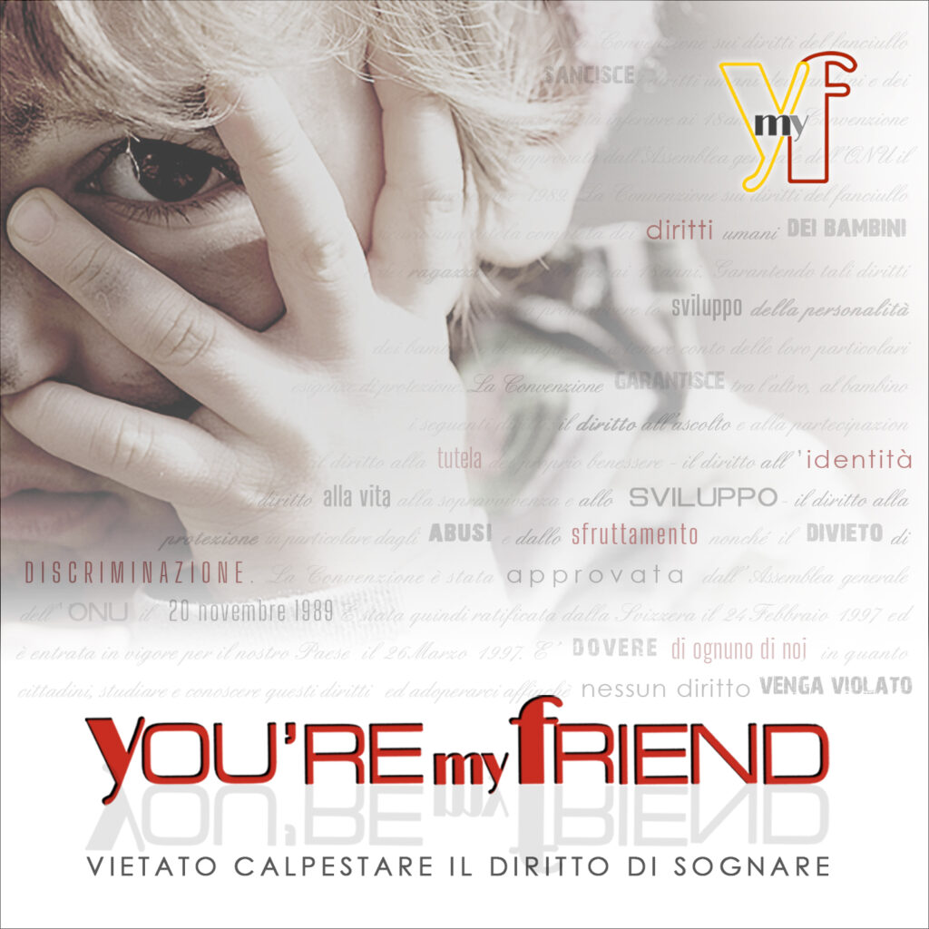 YOU’RE MY FRIEND è un megafono, un eco di risonanza che propaga musica nell’intento di ribadire la necessità di un impegno universale per la tutela dei minori in tutto il mondo. Un progetto di sensibilizzazione modulabile, aperto, che mette l’arte al servizio della solidarietà con lo scopo di collaborare con fondazioni e associazioni No Profit alle quali poter convogliare i proventi ricavati da donazioni e sponsorizzazioni del progetto. Un ‘disegno’ non solo musicale, ma una progettualità ad ampio respiro comprendente eventi ed iniziative concrete sull’intero territorio nazionale.
