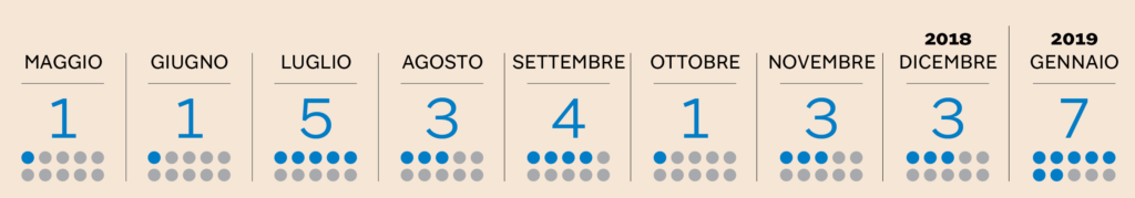 Il numero di leggi approvate in Parlamento da maggio a gennaio (Fonte: AGI, Open Polis) Open Polis