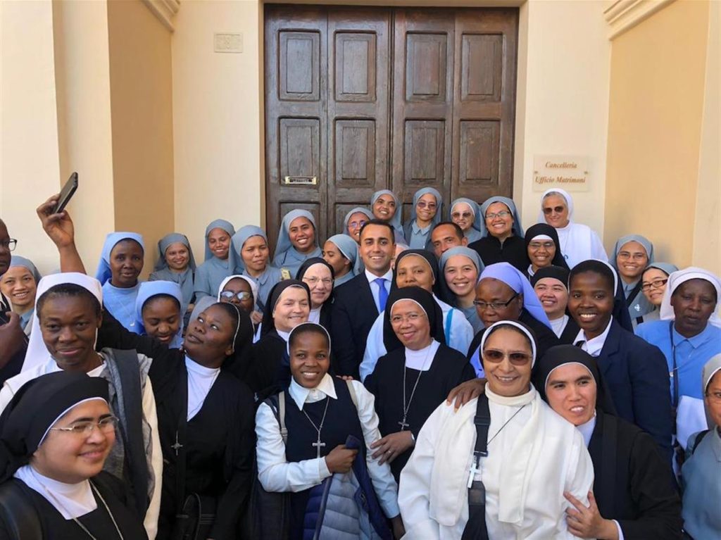 Ce l’ha messa tutta Luigi Di Maio, nel fine settimana, per far sentire la sua voce tra i due Mattei. Schiacciato dalla Leopolda renziana da un lato e la piazza salviniana di Roma dall’altro, l’impegno programmato nel weekend per il capo politico dei Cinque Stelle, da ministro degli Esteri, era la presentazione del padiglione italiano all’Expo di Dubai 2020 a Matera. Non proprio un palco che scalda le folle, da cui poter lanciare grandi messaggi politici. Tant’è che il momento più forte è stato il selfie chiesto a Di Maio da un gruppo di suore straniere (nella foto). Richiesta che, ovviamente, è stata prontamente esaudita.