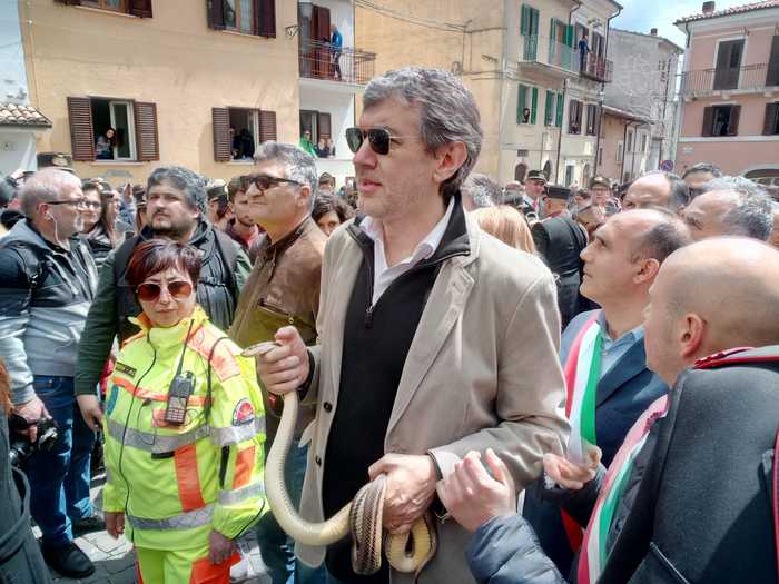 (ANSA) – Cocullo (L’Aquila) – Il presidente della Regione Marco Marsilio si è recato alla Festa dei Serpari di San Domenico a Cocullo e ha spiegato che ”è la prima volta che partecipo a questa processione, ma devo dire che ce l’ho negli occhi da quando ero bambino grazie ad un quadro di un mio zio che ritraeva questa festa. Sono molto contento di essere stato qui”.