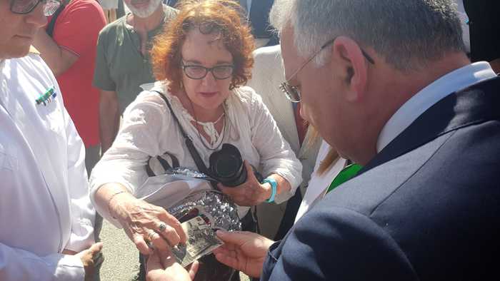 “Io c’ero qui 73 anni fa, nella pancia di mia mamma”. Rachel Algom Glicksman mostra una foto al sindaco della Spezia: i suoi genitori, scampati ai lager nazisti, furono tra le persone aiutate dalla solidarietà degli spezzini per salpare dal porto della Spezia, rompendo il blocco imposto dagli inglesi, e andare in Israele.