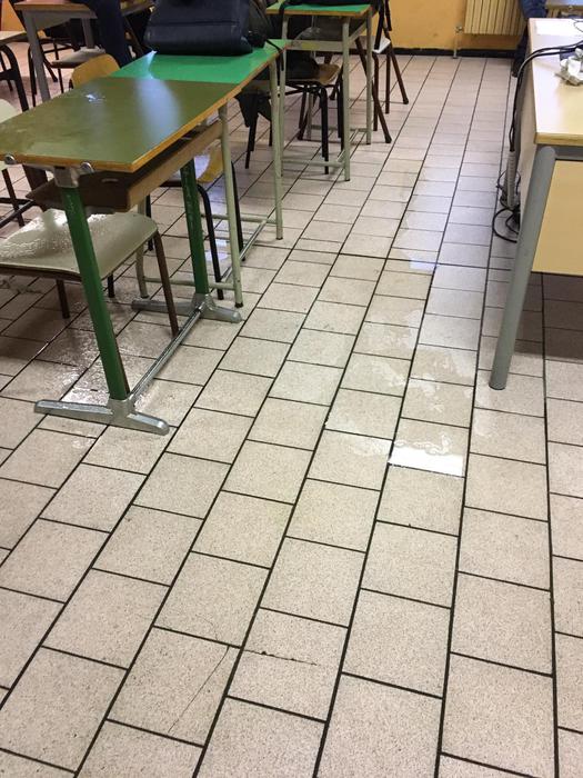 Anche all’Itsos Albe Steiner di via San Dionigi pannelli crollati e acqua nelle aule. La scuola, secondo quanto riferito, è comunque aperta.