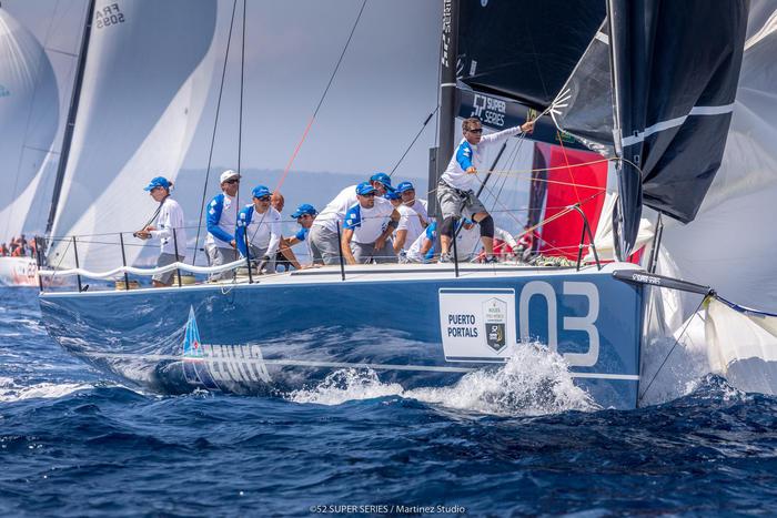 Giornata altalenante per Azzurra nella baia di Palma di Maiorca, dove oggi si sono disputate le prime due prove del Tp52 World Championship, valido anche come quarta tappa della 52 Super Series, il circuito di vela professionistica per barche a chiglia. Si è regatato con la consueta brezza termica da sudovest; 8 nodi alla partenza della prima prova, saliti a 11 con una rotazione a destra per la seconda.