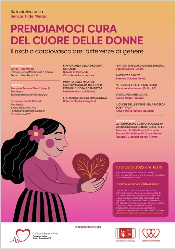 L’allarme arriva dalla Fondazione “Il Cuore Siamo Noi” della Società Italiana di Cardiologia (SIC) che ha promosso, oggi in Senato, un convegno interamente dedicato al cuore delle donne e alle differenze di genere nel rischio cardiovascolare. “Il fatto che le donne siano sottorappresentate negli studi clinici in ambito cardiologico ha conseguenze importanti sulla salute del cuore perché può portare a terapie che non consentono una cura “sartoriale” delle patologie cardiovascolari nel genere femminile, in quanto i trial non tengono adeguatamente conto delle differenze biologiche tra i due sessi con risultati che possono incidere sulla mortalità e sul rischio di eventi cardiovascolari. Infatti, ignorare la specificità delle donne negli studi clinici comporta un non adeguato approccio clinico specifico. Tutto questo perché i farmaci comunemente utilizzati per le principali malattie cardiovascolari, a partire dall’infarto, sono testati prevalentemente sull’uomo e, pertanto, non adeguati alle caratteristiche fisiologiche esclusive della donna. Ciò contribuisce a un aumento degli effetti collaterali e a una minore aderenza terapeutica con rischio più alto del 20% di infarto miocardico”, sottolinea Francesco Barillà, Presidente della Fondazione “Il Cuore Siamo Noi” della Società Italiana di Cardiologia.