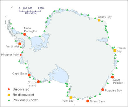 Mappa delle colonie di pinguini imperatore in Antartide (fonte: British Antarctic Survey)