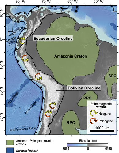 Un team di ricercatori dell’Istituto Nazionale di Geofisica e Vulcanologia (INGV), dell’Università ESPOL di Guayaquil in Ecuador e dell’Università di Toronto in Canada, hanno dimostrato che la Cordigliera Occidentale dell’Ecuador ha subito una rotazione oraria di circa 20° negli ultimi 10 milioni di anni. Confrontando questo risultato con precedenti ricerche lungo le Ande, hanno scoperto che la tipica forma convessa delle Ande in Ecuador è stata generata da rotazioni paleomagnetiche di verso opposto, orario ed antiorario, dei due lembi dell’arco. Il processo di orogenesi ha quindi determinato l’arcuatura della catena montuosa che precedentemente aveva una forma più rettilinea.
