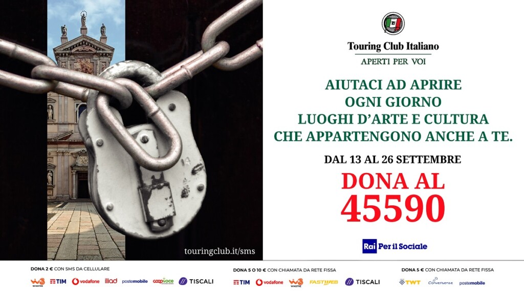 Riaprire le porte delle meraviglie artistiche e culturali del Paese, aiutando l’Italia a ripartire anche attraverso la bellezza. Touring Club Italiano, che dal 1894 si prende cura dell’Italia come bene comune perché sia più conosciuta, attrattiva, competitiva e accogliente, lancia una campagna solidale per sostenere il progetto “Aperti per Voi”, volto a garantire tutto l’anno, grazie alla preziosa collaborazione di migliaia di soci volontari, l’accessibilità di siti culturali (musei, aree archeologiche, palazzi storici, chiese) altrimenti chiusi al pubblico.