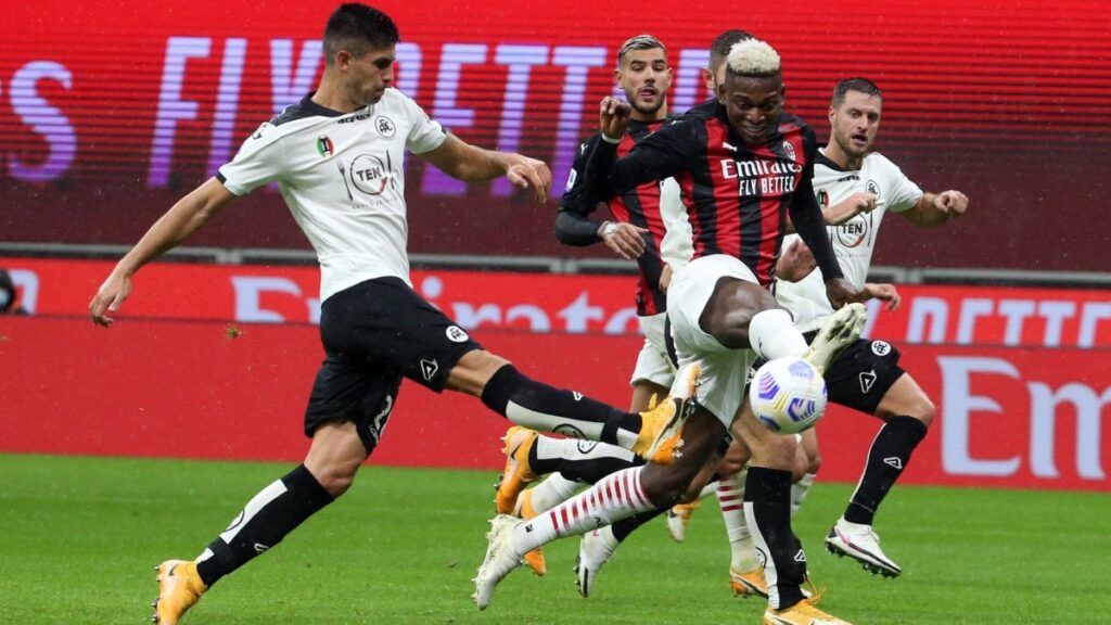 Pioli, costretto ancora una volta a rinunciare a Ibrahimovic e Rebic, ha deciso di rinfrescare la squadra uscita vittoriosa dopo 3 ore di battaglia con il Rio Ave con 5 elementi: fuori Kessié, Bennacer, Calhanoglu, Castillejo e Maldini, dentro Tonali, Krunic, Brahim Diaz, Leao e Colombo. Sul fronte opposto Italiano degli infortunati Zoet, Ramos e Deiola e con Ferrer in procinto di passare alla Sampdoria, ha messo Rafael tra i pali, ha restituito la maglia a destra a Sala, ha piazzato Marchizza a ricoprire l’inedito ruolo di terzino sinistro e ha rilanciato Pobega a centrocampo.