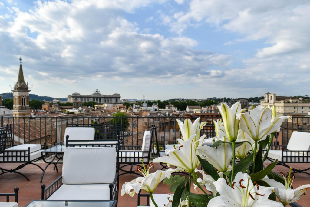 Una delle caratteristiche principali della struttura è la vista panoramica, che accompagna l’ospite in tutti gli ambienti: sia la sala colazione che molte delle camere godono di affaccio su Piazza Navona, in particolare sulla Fontana dei Quattro Fiumi di Bernini, e sullo skyline del centro di Roma: dalla cupola del Pantheon a quella di San Pietro.